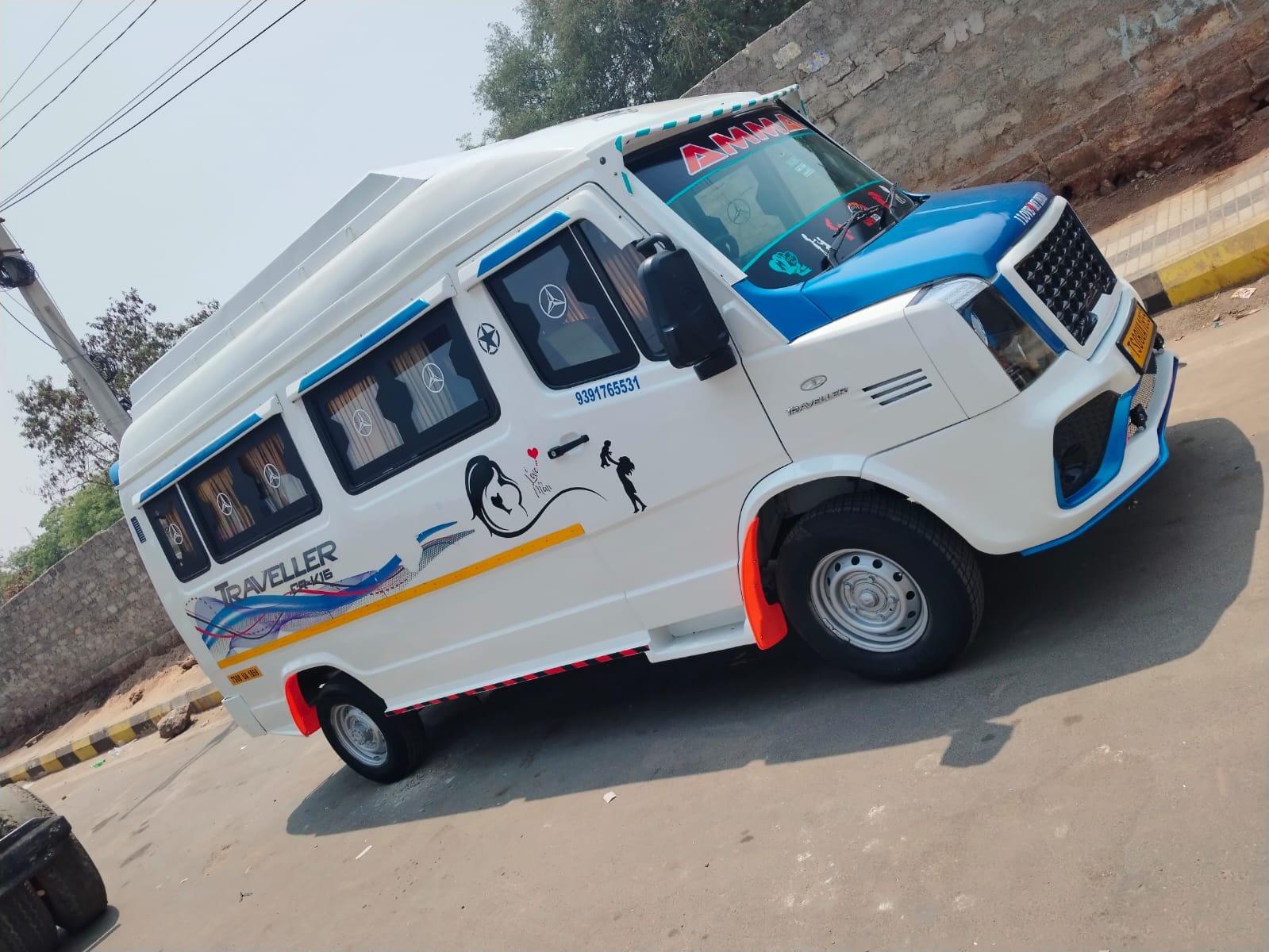 Tempo Traveller on Rent in Hyderabad is the ideal choice for comfortable and affordable group travel, whether you’re planning a family outing, a corporate trip, a pilgrimage, or a weekend getaway with friends. At Srisailam Mallikarjuna Travels, we offer a wide range of well-maintained and fully air-conditioned Tempo Travellers in various seating capacities—9-seater, 12-seater, 17-seater, and 26-seater—to meet the needs of every group size. Designed for long-distance and city travel alike, our Tempo Travellers are equipped with luxury push-back seats, individual AC vents, ample legroom, and spacious interiors, ensuring a smooth and enjoyable ride for all passengers. Whether you’re touring Hyderabad’s iconic landmarks like Charminar, Golconda Fort, or Ramoji Film City, or heading outstation to popular destinations like Srisailam, Tirupati, Shirdi, Vijayawada, or Warangal, our vehicles offer the perfect blend of reliability and comfort. Each Tempo Traveller comes with a professional, experienced, and courteous driver who knows the local and intercity routes thoroughly, ensuring on-time arrivals and a stress-free journey. We provide flexible rental packages, including hourly, daily, and per-kilometer pricing, along with transparent billing and no hidden charges. With a reputation built on punctuality, cleanliness, and customer satisfaction, Srisailam Mallikarjuna Travels is a trusted name for Tempo Traveller rentals in the city. Whether it’s for a wedding, an office team outing, a school trip, or an airport transfer for a large group, our Tempo Travellers provide a safe, stylish, and convenient travel experience every time.